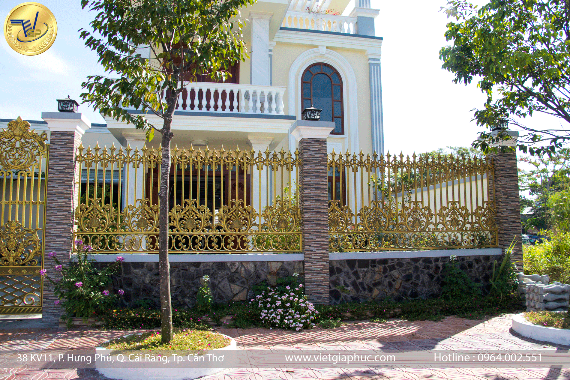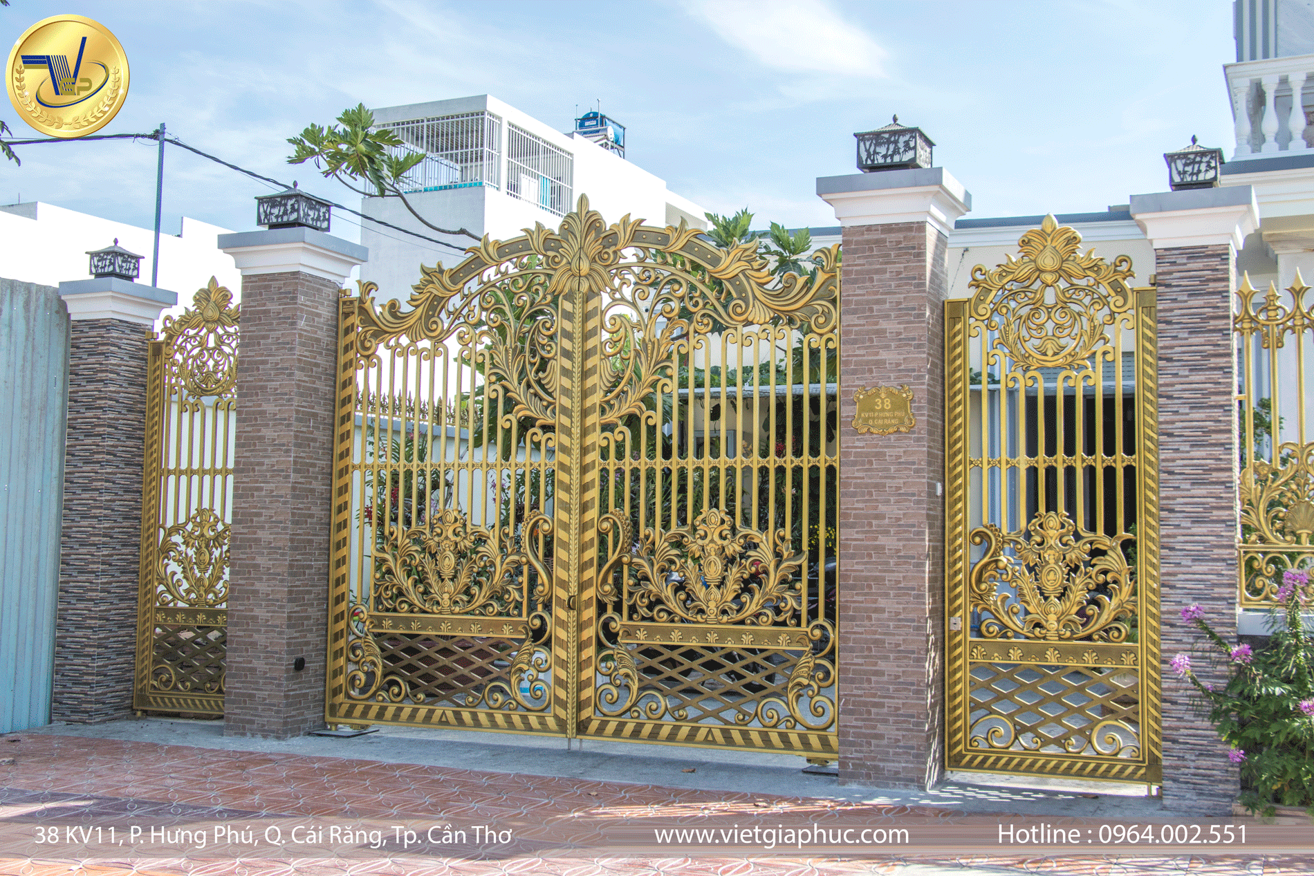 Cổng nhôm đúc Cần Thơ: cổng thoáng hoa lá tây, hàng rào thoáng được VGP hoàn thành năm 2018 tại Cái Răng, Cần Thơ.