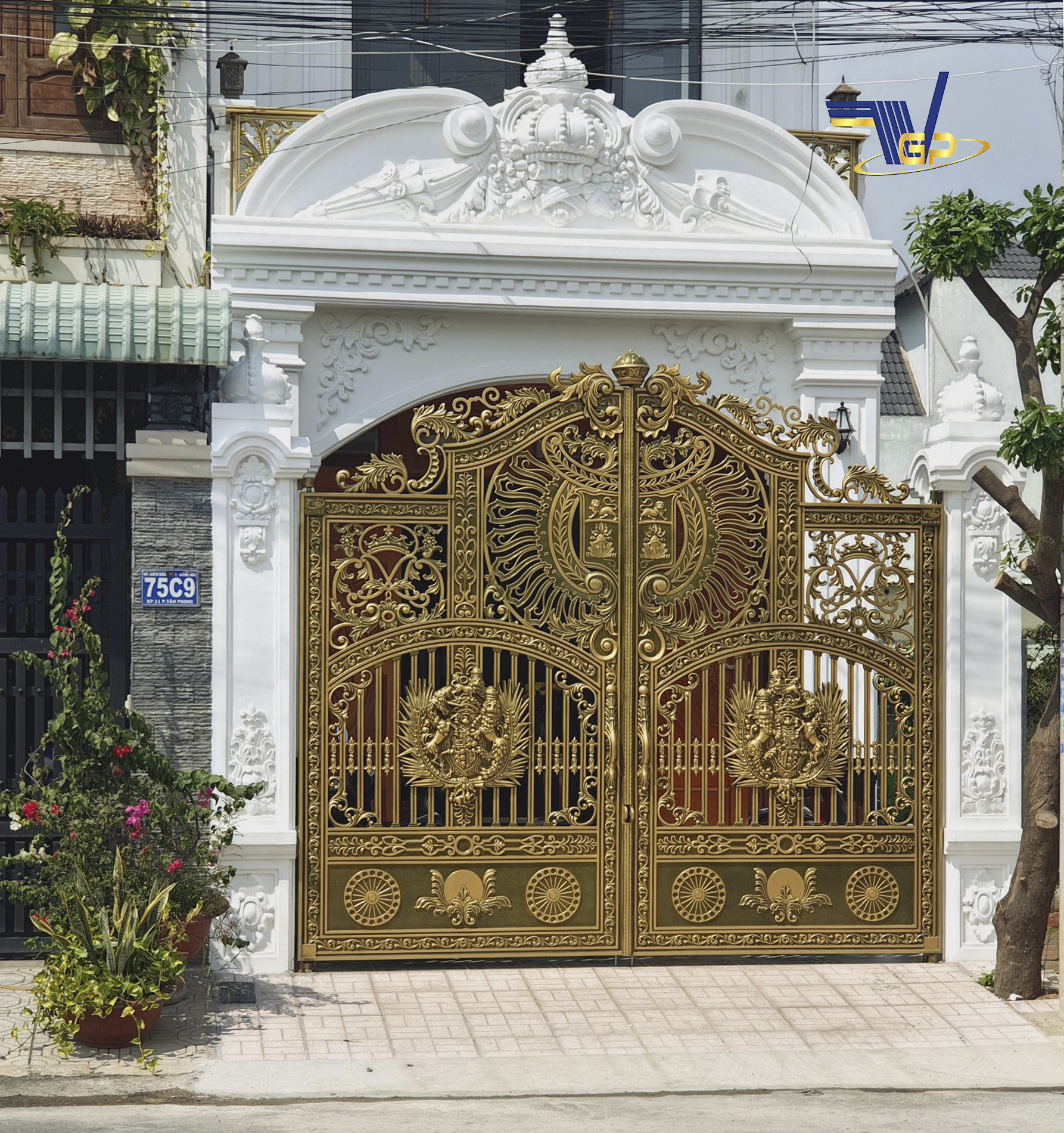 Công trình cổng nhôm đúc Biên Hòa: mẫu cổng & ban công được sử dụng theo phong cách tân cổ điển châu âu.
