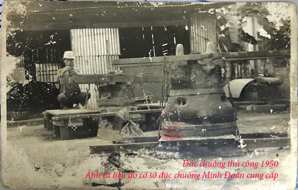 Kể từ khi đạo công giáo du nhập vào Việt Nam từ thế kỷ 16, phần lớn chuông tây được nhập khẩu trực tiếp từ Pháp hoặc Đức để phục vụ giáo dân. Nhận thấy trách nhiệm của mình, Cơ Sở Đúc Chuông Minh Đoàn đã nghiên cứu và dựa trên nền tảng kiến thức của nghề đúc đồng, chúng tôi đã chế tác thành công chuông tây lần đầu tiên tại Việt Nam vào trước nhứng năm 1945, chuông đạt được tiêu chuẩn cả về âm thanh lẫn độ tinh sảo của hoa văn. |