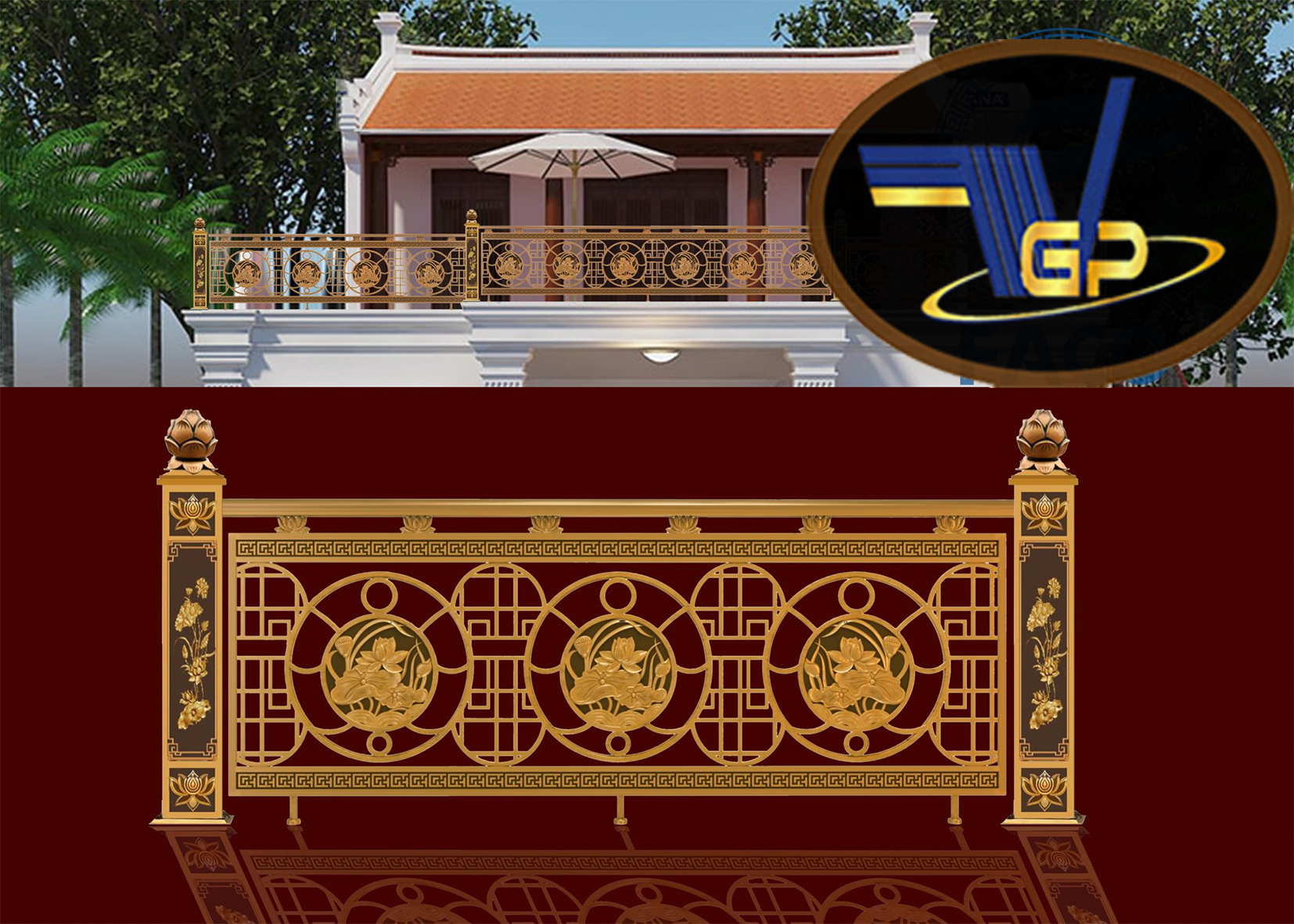 Mẫu ban công nhôm đúc hoa sen